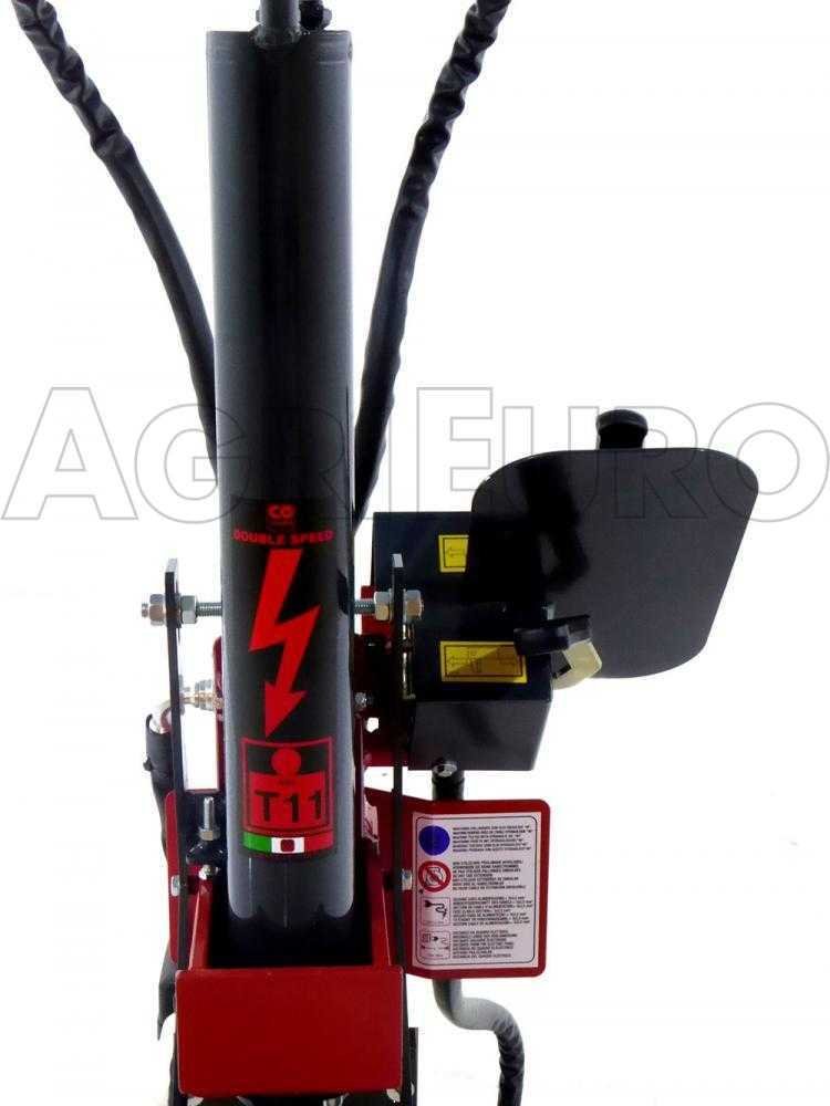 Le système hydraulique comprend une pompe simple à haut débit de 9,5 L/min, assurant une pression maximale de 180 bars. La fendeuse dispose d’un circuit à double vitesse permettant de choisir entre une descente rapide pour le positionnement du coin et une vitesse lente et puissante pour le fendage.