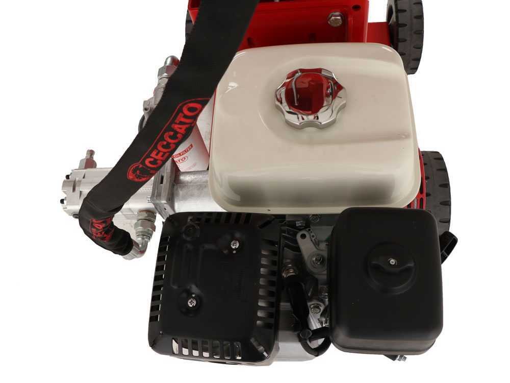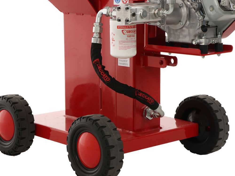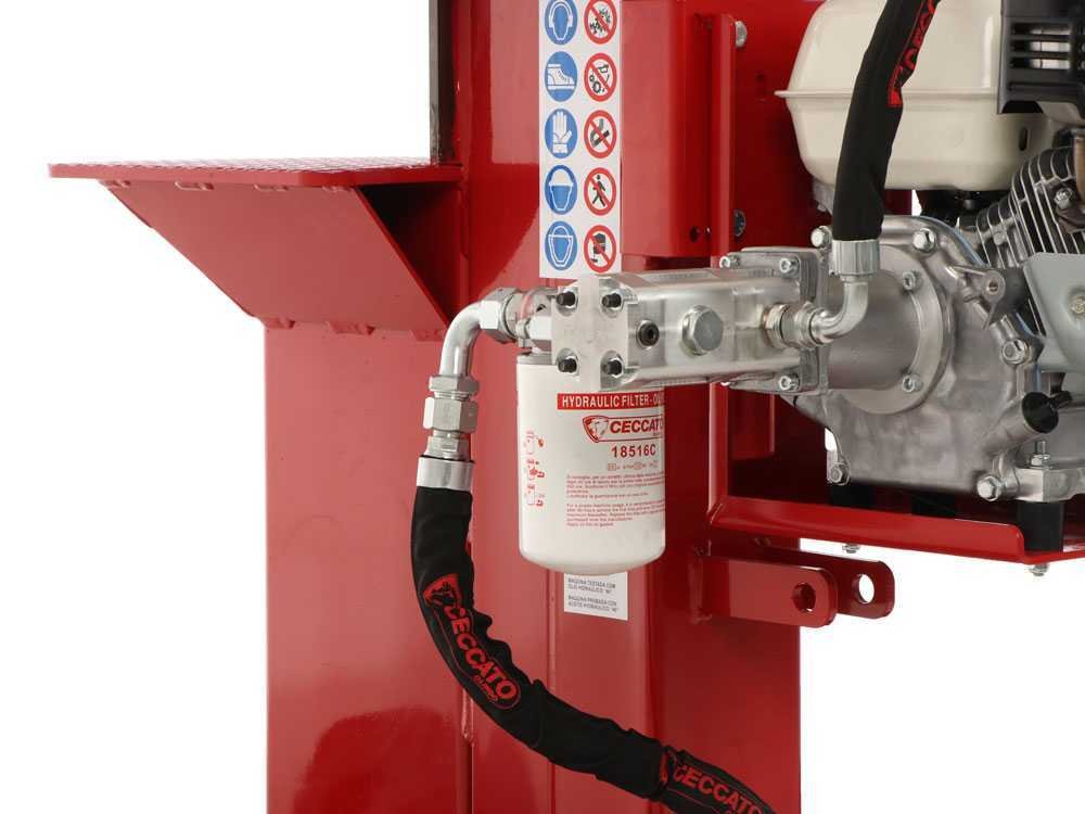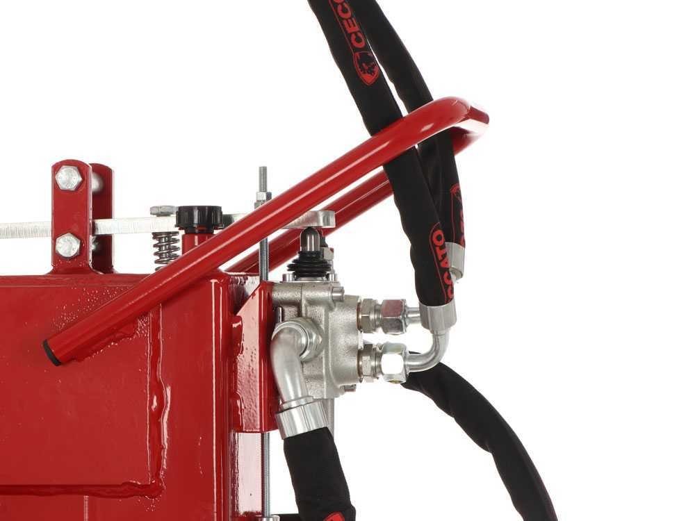 Le réservoir d’huile hydraulique intégré (16 L) est facilement accessible, tout comme les filtres à air et à huile. Le système hydraulique est protégé par une gaine en toile sérigraphiée Ceccato Olindo, renforcée par des clous en acier pour une sécurité accrue. Cette conception ingénieuse prolonge la durée de vie du matériel tout en facilitant l’entretien quotidien.