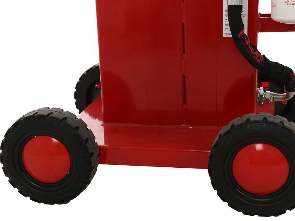 Le vérin escamotable permet un rangement et un transport aisés, tandis que les roues de 25 cm et la poignée intégrée assurent une mobilité parfaite. Son châssis en acier émaillé et sa base de 55 mm d’épaisseur offrent une stabilité exceptionnelle, même sur terrain irrégulier.