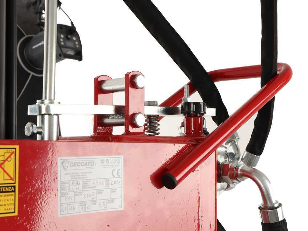 La Ceccato BULL SPL16R4H intègre plusieurs dispositifs de sécurité conformes à la norme DIN EN 609-1:2017. Les leviers de commande doubles nécessitent une action à deux mains pour éviter toute blessure. Le système anti-écrasement, le filtre à huile à cartouche et le dispositif de blocage automatique du vérin garantissent une sécurité maximale à chaque utilisation.